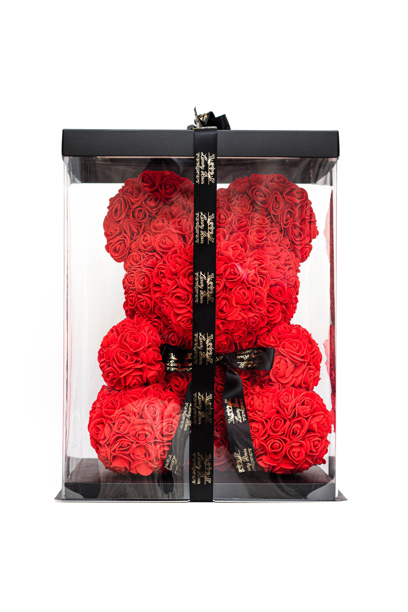 Karu on 100% käsitöö pehmetest roosiõitest, mis annavad imeilusa ja efektse välimuse. Karu on pakitud kenasse läbipaistvate külgedega kinkekarpi